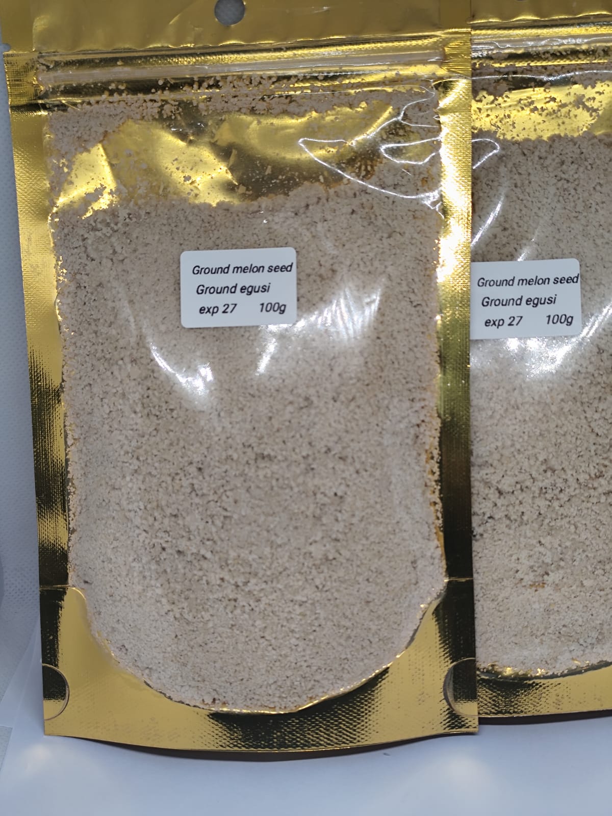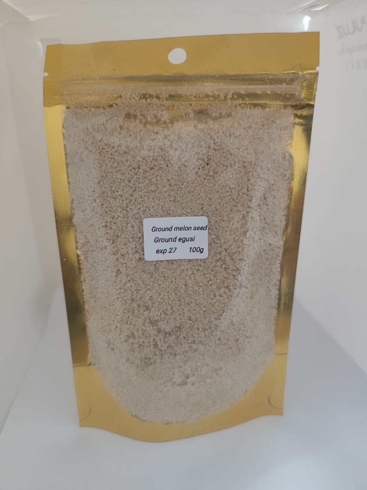 Préparez de savoureux repas africains avec l'Egusi moulu (100 g), issu de graines de melon 100 % naturelles et finement moulues pour une cuisson facile.