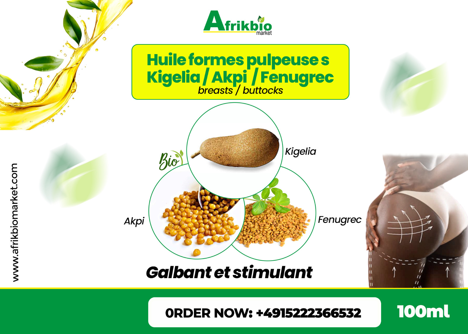 L'huile de kigelia est reconnue pour ses vertus, notamment sur le développement de la poitrine, des fesses et des hanches.